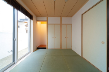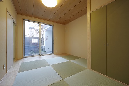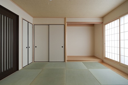 和室の畳は縁なしの畳敷きとし、イ草ではなく和紙を採用する事で、色あせも少なく、防虫効果も期待できます。