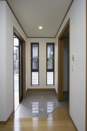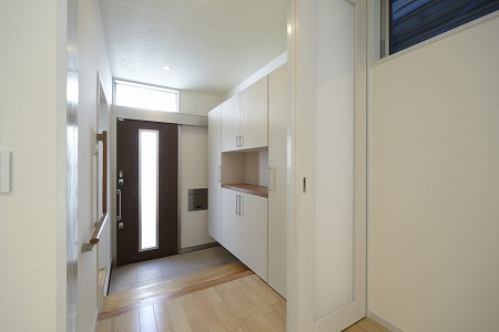 玄関に引戸を採用することで、少ない空間を最大限利用出来る様に設計しています。