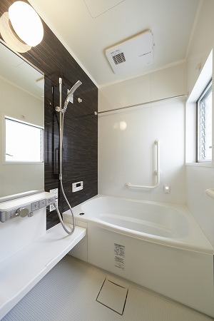 ユニットバスは1620サイズを取付けゆったりくつろげる様にしています。また、浴室暖房乾燥機も取り付けています。