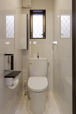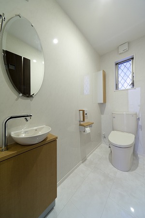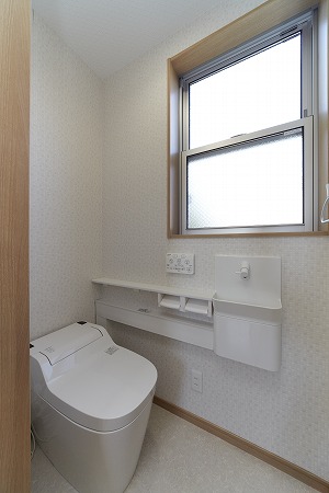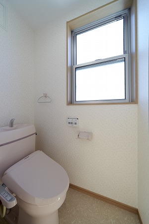 2階のトイレはコンパクトにまとめながらも、明るい光が入る様にしています。