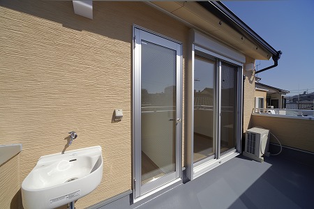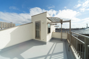 周辺の建物が低い為、屋上バルコニーは明るく開放的になっています。