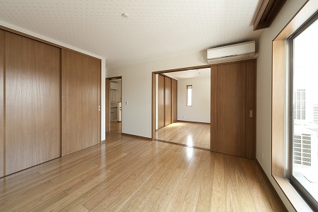 和室スペースには3枚連動引き戸を設置し収納スペースが最大限に利用出来る様にしています。