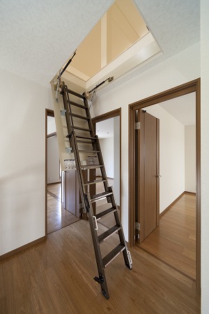 ロフトへの梯子はリビング天井収納されており、必要に応じて設置する事が出来ます。
