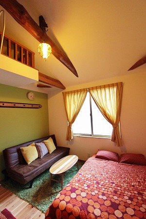 階段上のロフトは小さな秘密基地的な空間になっています。