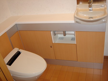 手洗いカウンター一体式のトイレです。