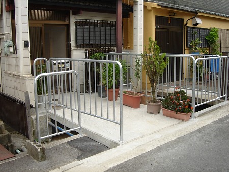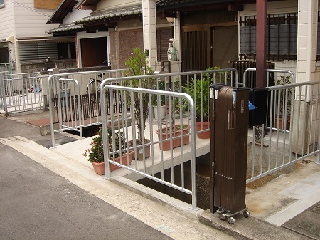 傾斜地の為アコーディオン門扉はリフティング式にしています。