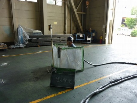 産業用ガス製造の工場内に自動搬送機を設置。(工事中)1階はピットを掘り下げ、搬送機面がフラットになる様に しています。
