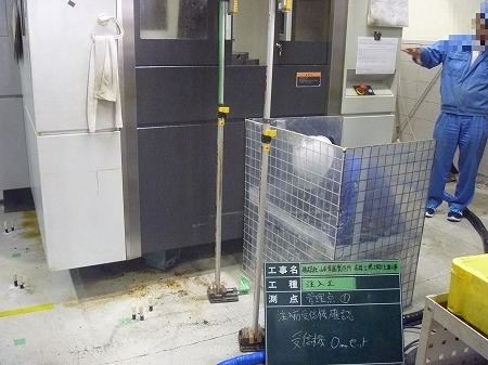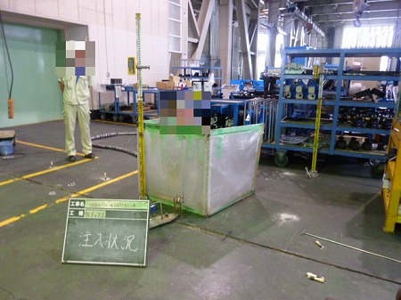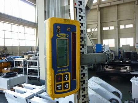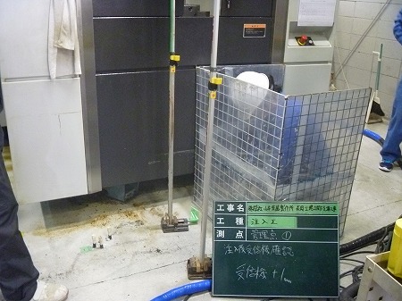 施工中 レーザーレベル確認状況-管理点①   注入前に現状レベル確認