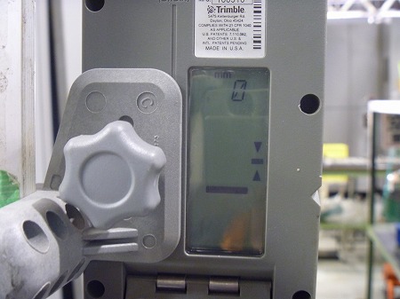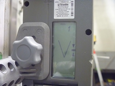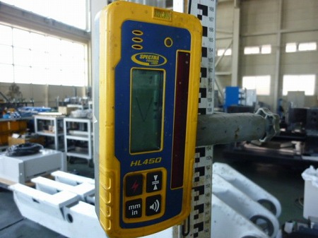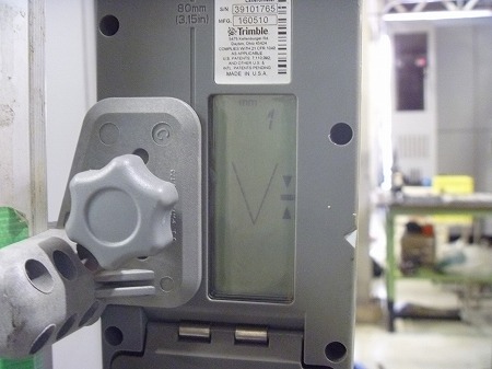 施工中 レーザーレベル確認状況-管理点①   土間が上昇する事でレーザーレベルの数値も上昇します。