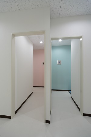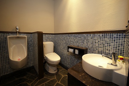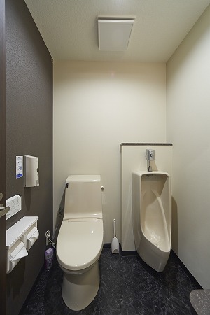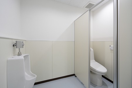 男性トイレは小便器・大便器をセパレートにし、ブルーを基調に清楚な雰囲気を醸し出しています。