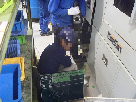 施工中 レーザーレベル確認状況-管理点②   注入前に現状レベル確認