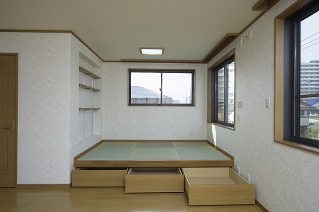 畳コーナーの下部には収納スペースを設け空間を有効利用しています。