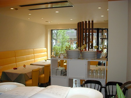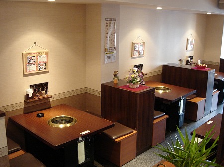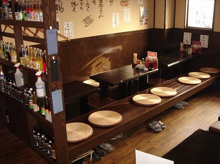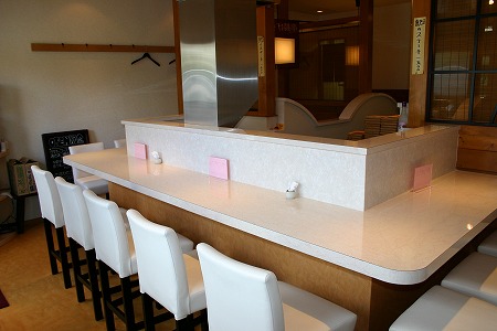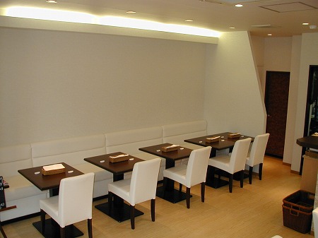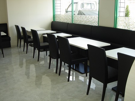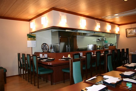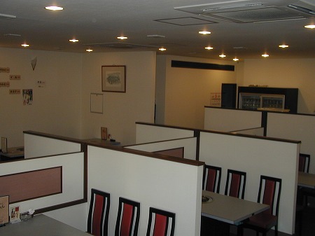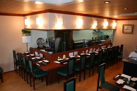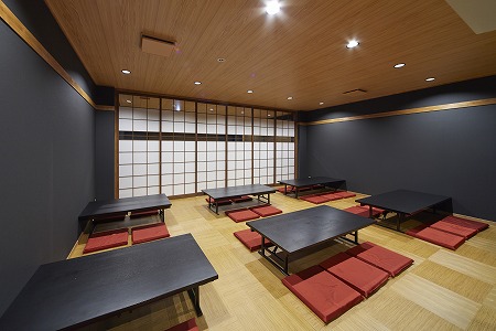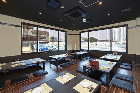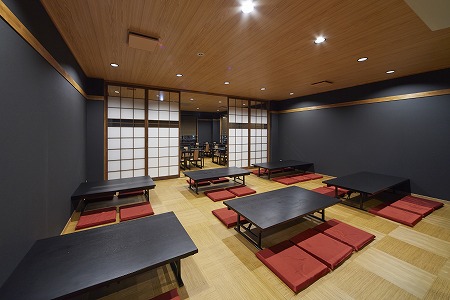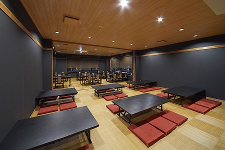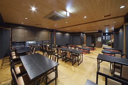 大人数での宴会にも対応出来る様に、ホール奥側には連続したテーブル席を2列配置しています。