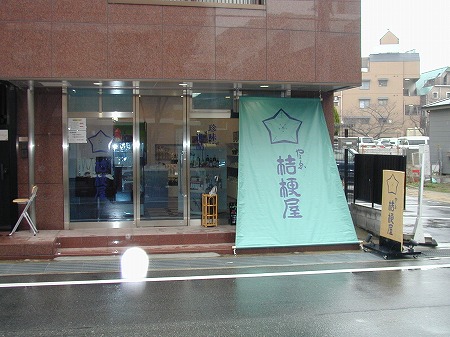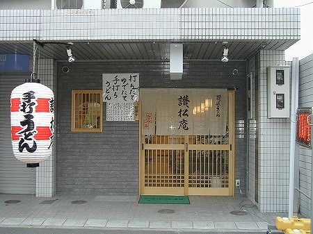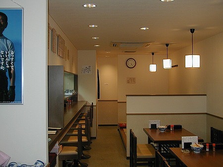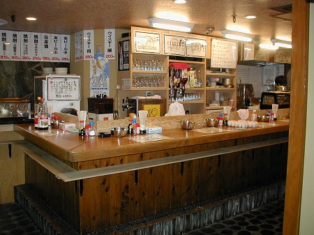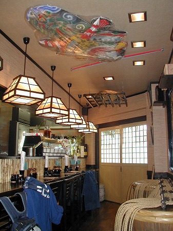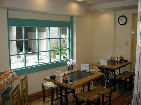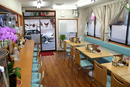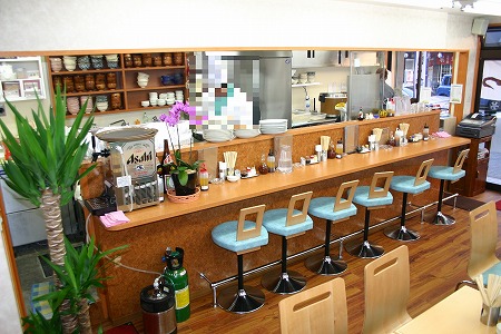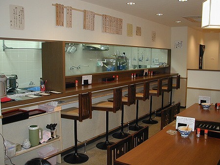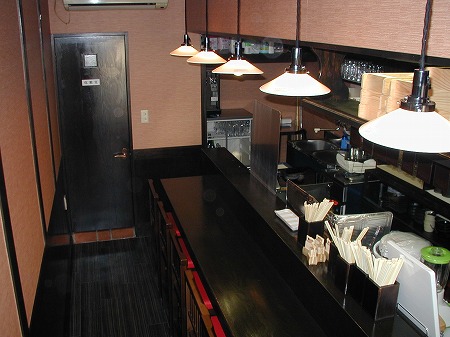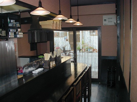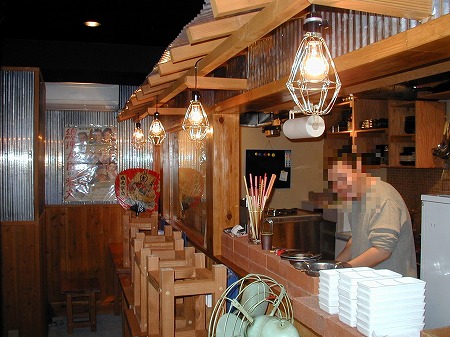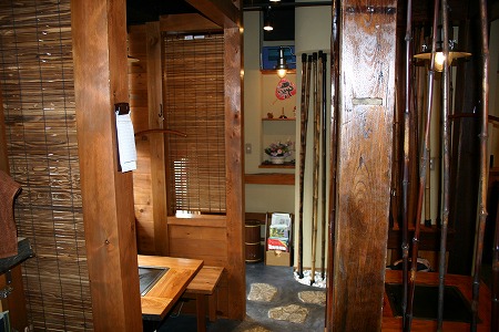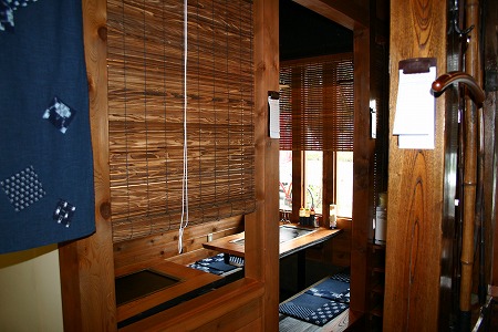 入店後左側にはレジカウンターとテイクアウトスペースがあり、左側にある個室の窓には黄色い手拭いが干されており、 入店後の期待感を膨らませます。