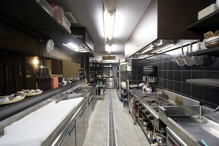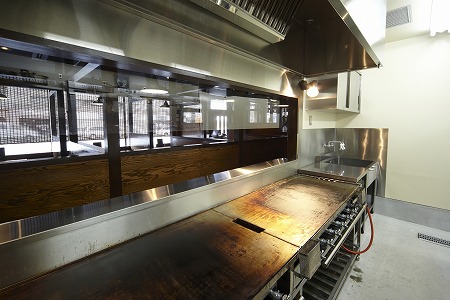 厨房のメインである大型の鉄板からはホールの大半を垣間見ることができ、お客様の表情を伺いながら調理することができます。