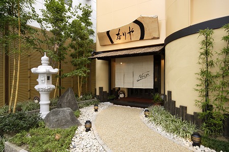 ウェイティングエリアには黒竹・玉砂利を配置し、落ち着いた雰囲気で待ち時間を過ごせるようにしています。